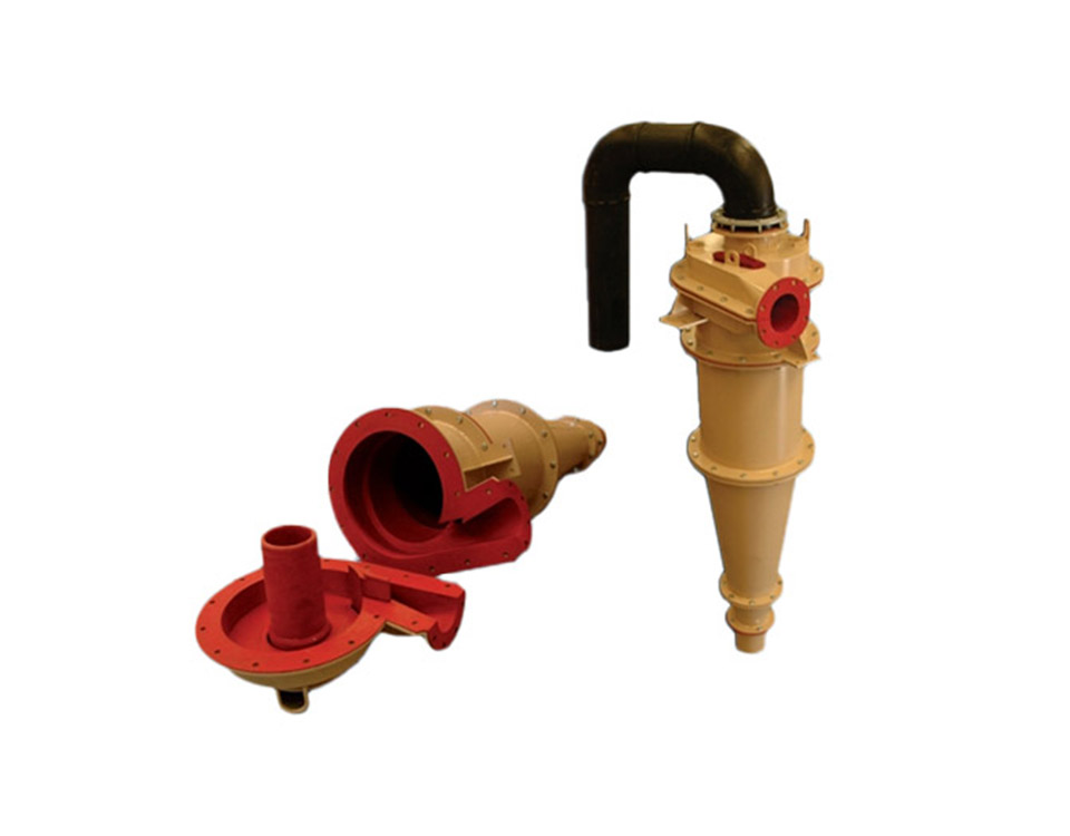 | 性能及優(yōu)點 | ●耐納特耐磨襯套以其卓越的耐磨性能大大降低用戶的使用成本 ●升級后的襯套可使旋流器更長時間保持內部流道形狀和尺寸,從而保持穩(wěn)定的分級效率 ●進料口可調裝置可使用戶很方便的調節(jié)旋流器而無需更換整個旋流器襯套 ●可提供模壓橡膠襯套和冷粘襯套,更加適合客戶需要, 并可現場更換 ●漸開線進料道設計,使給料呈帶狀流動,阻力小,減小了紊流影響,并可避免入料急促的回轉 ●多種型號及多種類耐納特旋流器可滿足不同的需求 ●耐納特經驗豐富的工程技術人員能夠為客戶提供滿意的技術支持 ●專用的選型軟件能夠為用戶提供快速準確的旋流器選型。小錐體和沉沙 嘴的襯套可采用耐納特陶瓷材料 |